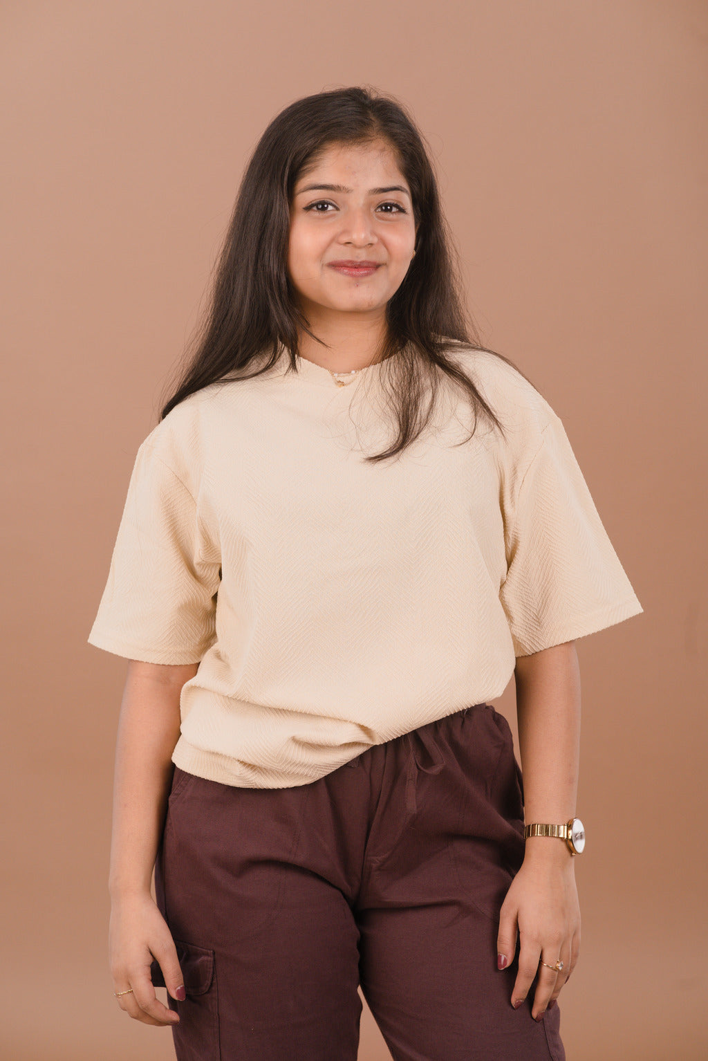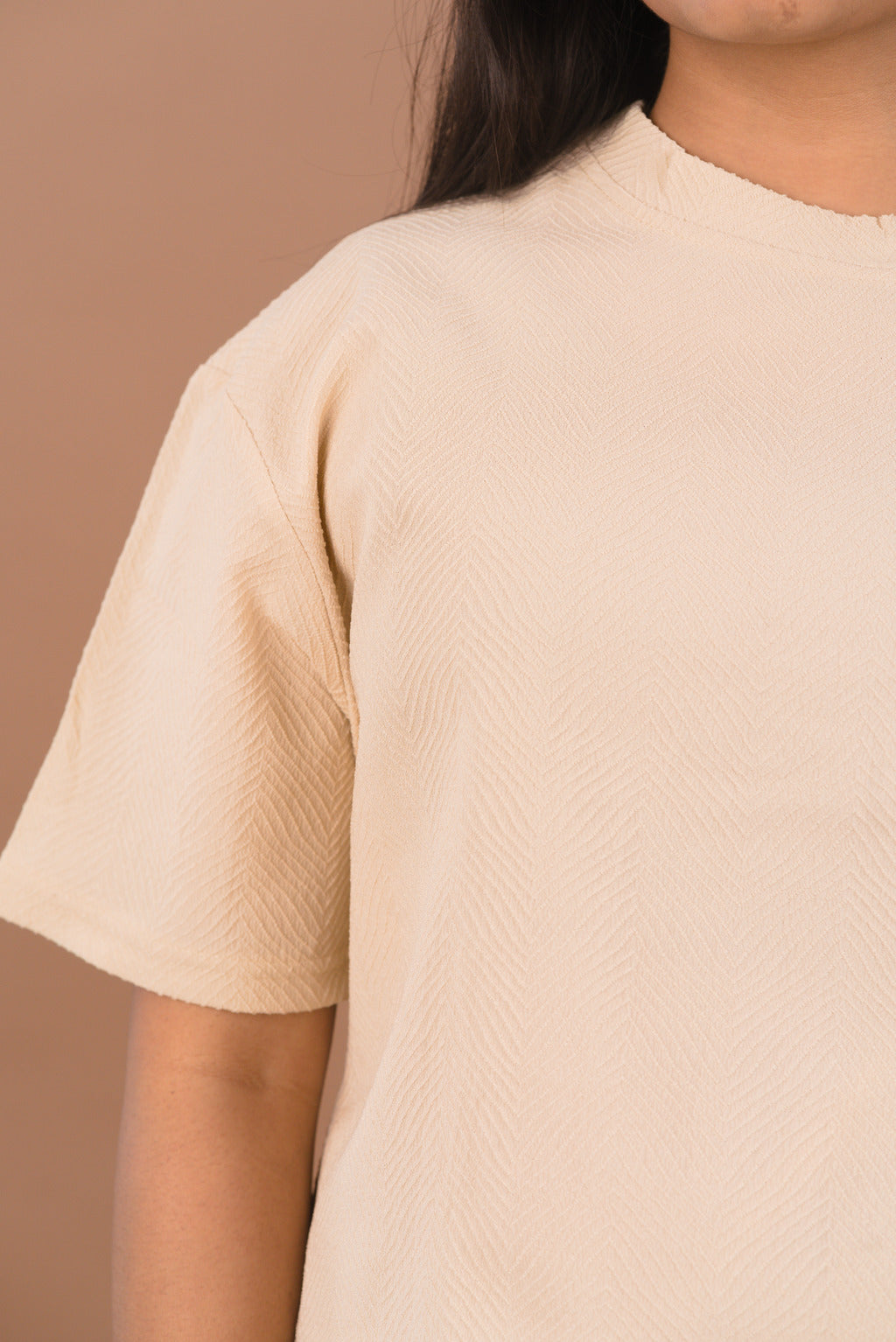 Add warm neutral elegance to your wardrobe with our Beige Jacquard Self-Textured Premium Women’s T-Shirt. Designed with the same high-quality jacquard fabric as our white variant, this tee features a rich self-textured weave that elevates everyday casual wear.