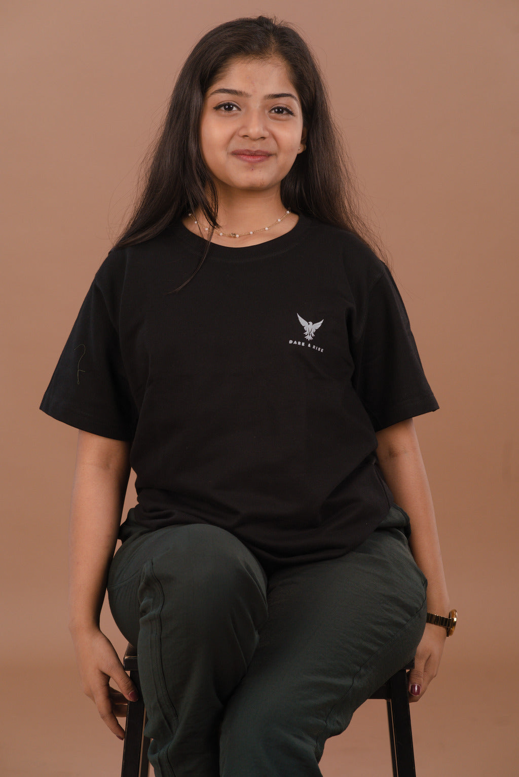 The ultimate foundation for the modern woman’s wardrobe: the Classic Obsidian Black Premium T-Shirt by Dare & Rise. Engineered for those who appreciate the weight of luxury quality, this tee is crafted from our high-density 240 GSM PC Looper Cotton. It delivers a sophisticated, structured silhouette that offers a professional edge to a relaxed everyday staple.
