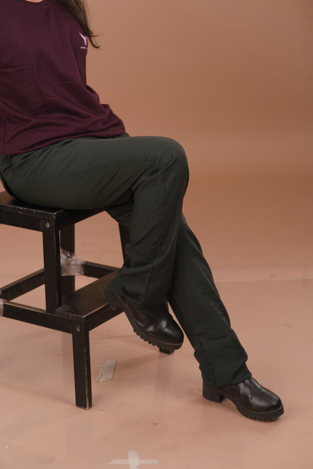 Create a powerful, monochromatic look by pairing these Forest Green trousers with the Forest Green Women’s Oversized 240 GSM Tee. Complete the outfit with neutral-toned sneakers for a high-fashion streetwear aesthetic.
