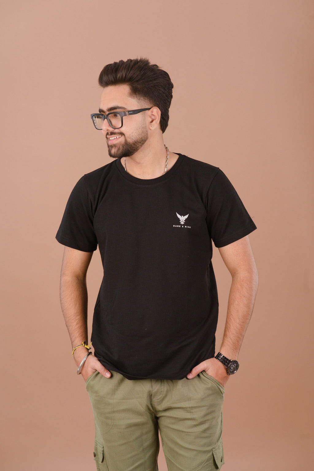 Dominate your daily rotation with the Midnight Black Men’s Premium T-Shirt by Dare & Rise. This absolute black staple is engineered for the man who values power and precision in his wardrobe. Meticulously crafted from our signature 240 GSM PC Looper Cotton, this heavyweight garment provides a substantial, structured drape that holds its shape perfectly throughout the day.