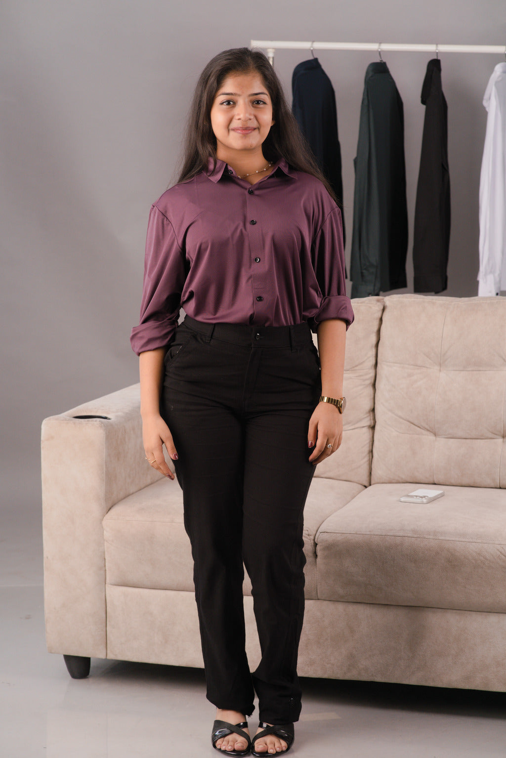 Make a sophisticated statement with the Mulberry Plum Tech Shirt by Dare & Rise. This deep, jewel-toned piece is designed for the modern woman who values both distinct style and high-performance functionality. Whether you are navigating a high-stakes meeting or transitioning to an evening event, this shirt offers an unmatched blend of elegance and ease.