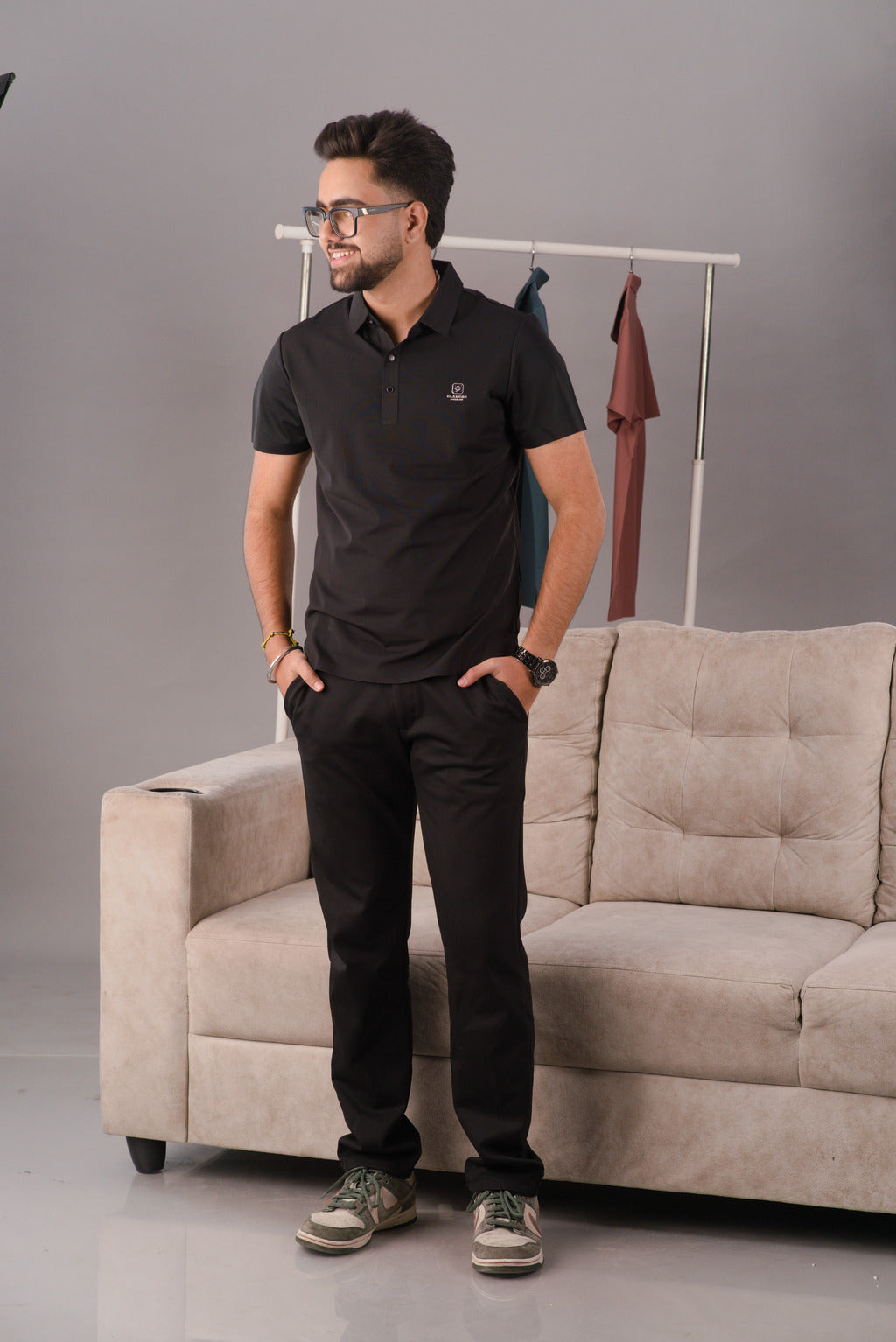 The Onyx Black variant is the ultimate "style chameleon." Pair it with Black tailored trousers for a sharp, monochromatic professional look, or wear it with light grey chinos for a sophisticated high-contrast ensemble. Its matte, technical finish makes it a perfect stand-alone piece that outclasses any standard cotton polo.