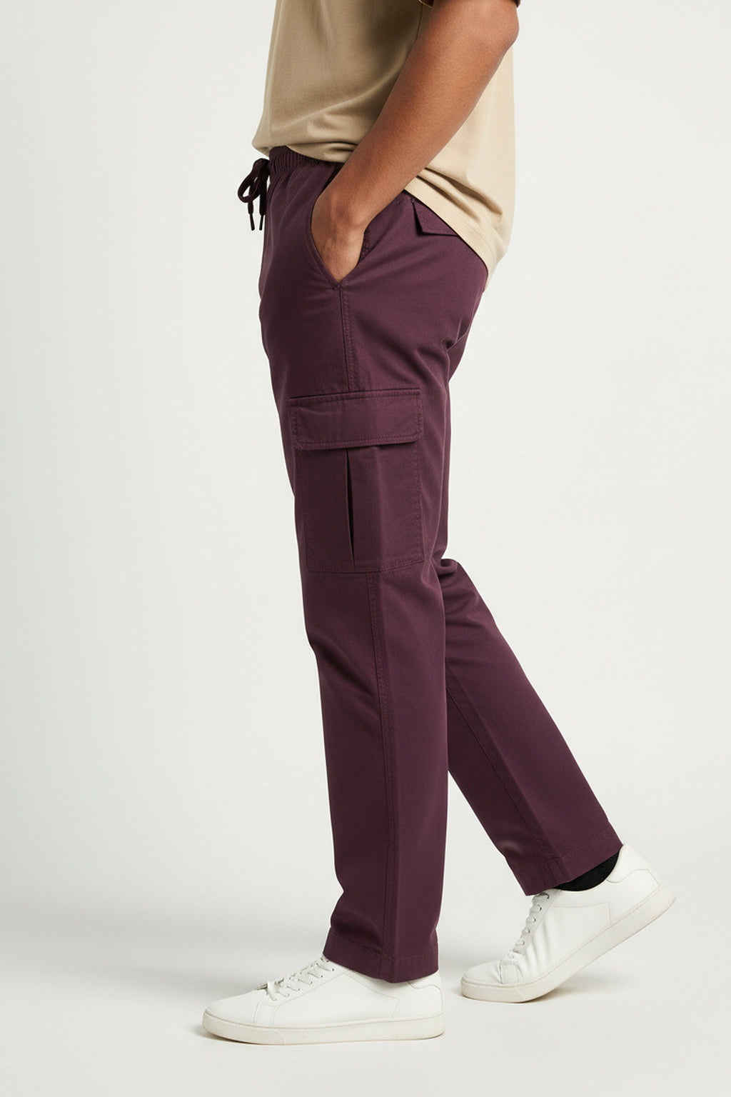 The Wine Maroon Corduroy Cargos act as a powerful statement piece. Pair them with the Midnight Navy 240 GSM Tee for a rich, high-contrast urban look, or style them with the Oatmeal Grid Organic Cotton Shirt for a sophisticated play on textures.