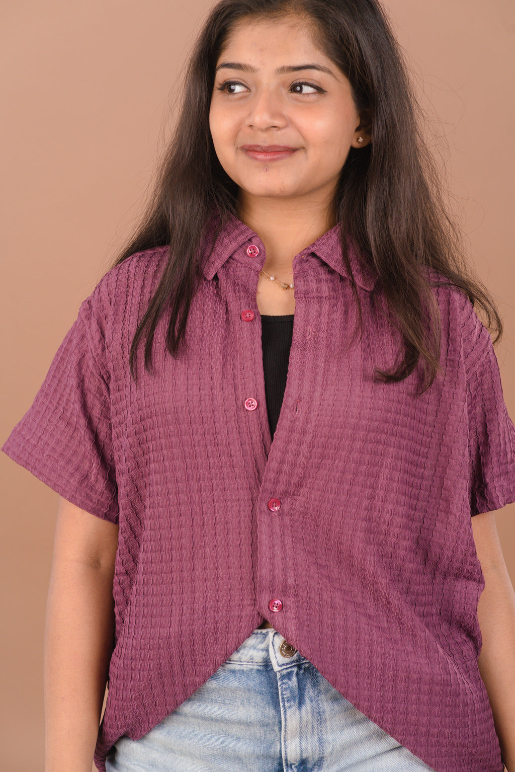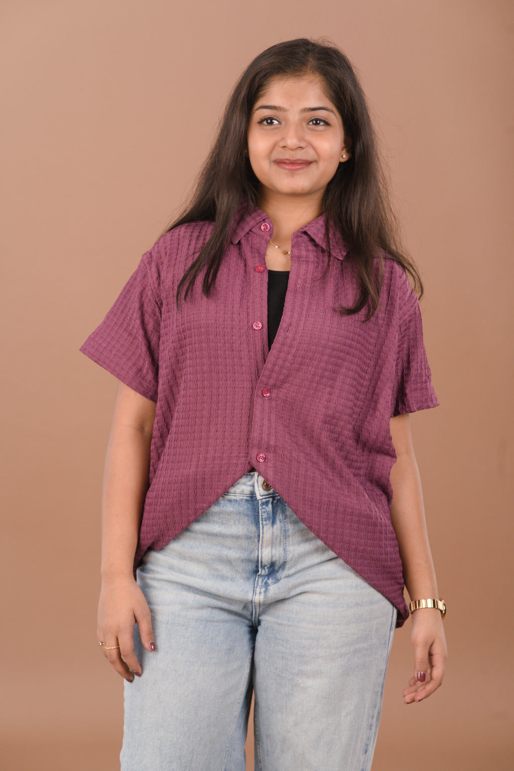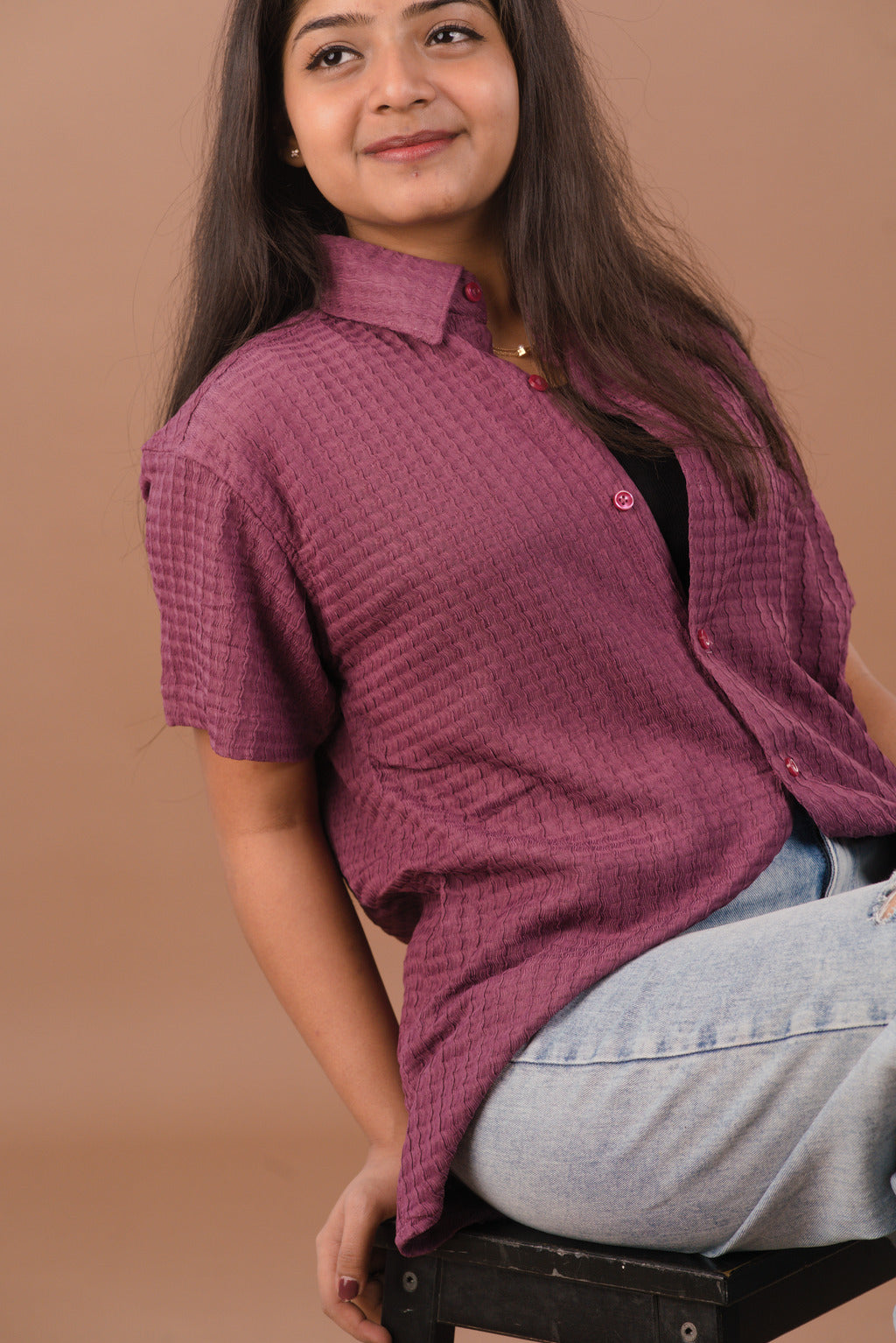 Make everyday styling effortlessly chic with our Wine Mauve Self-Textured Premium Women’s Shirt, crafted from high-quality imported fabric that feels luxuriously soft on the skin.